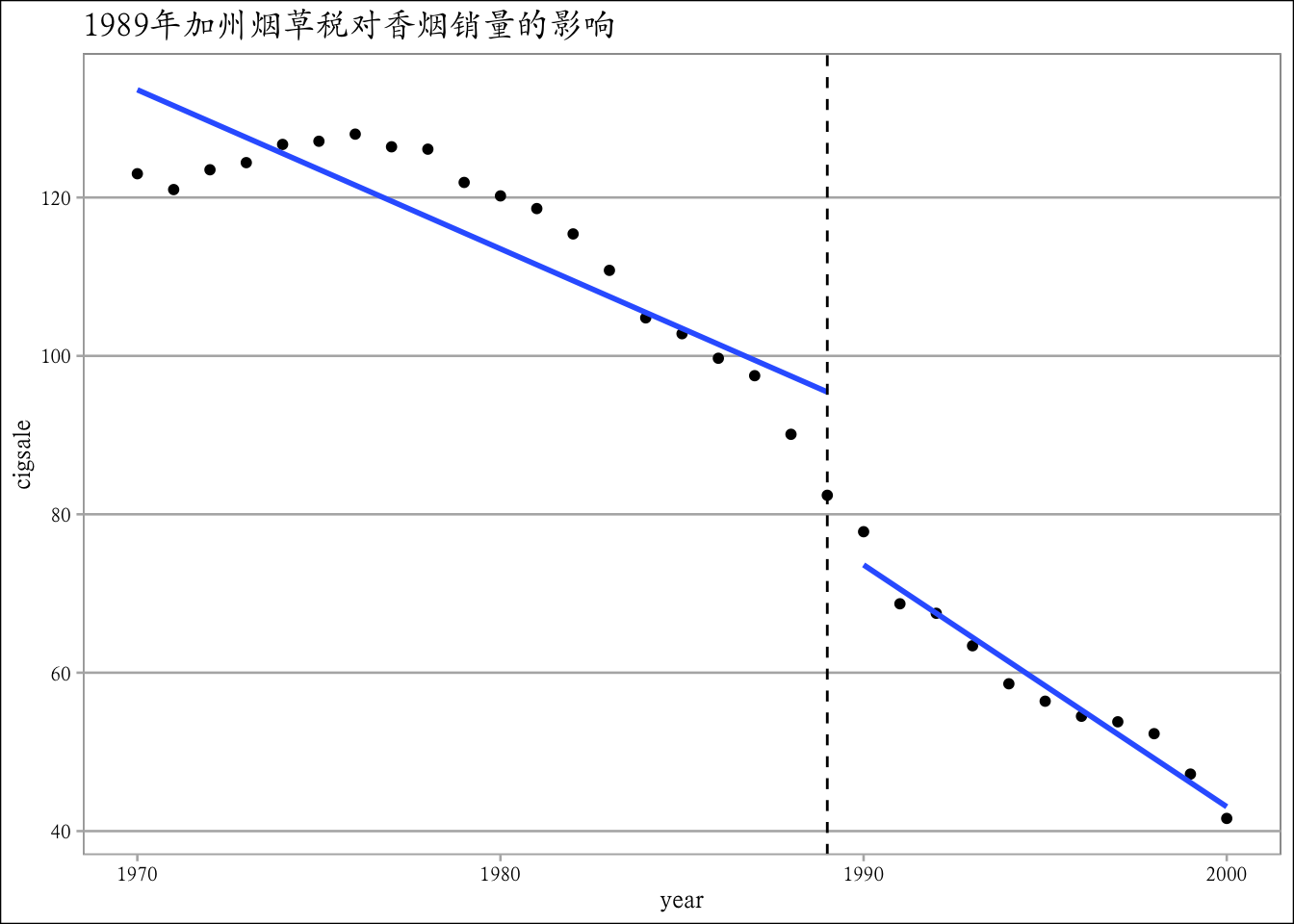 labs(title = "1989年加州烟草税对香烟销量的影响")+