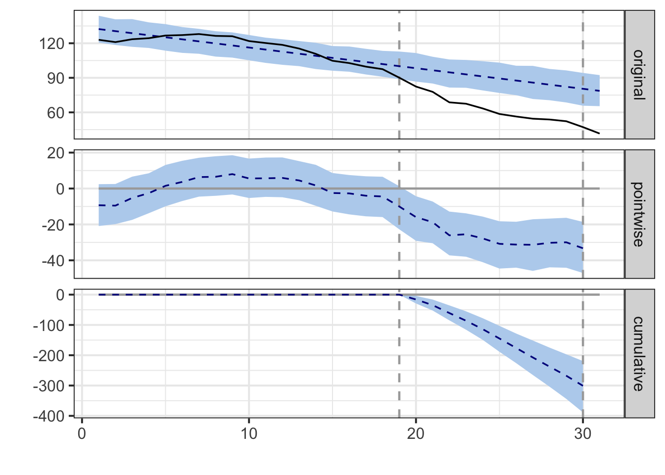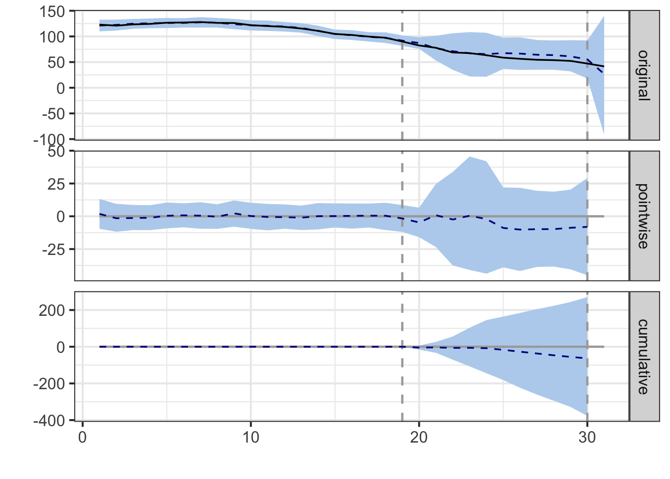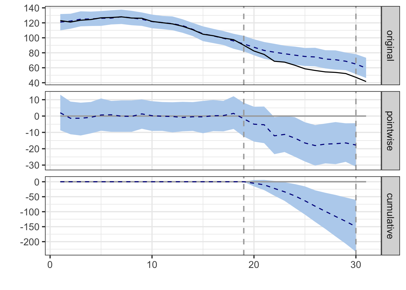 impact <- CausalImpact(cig_c_Cas, pre.period ,post.period)